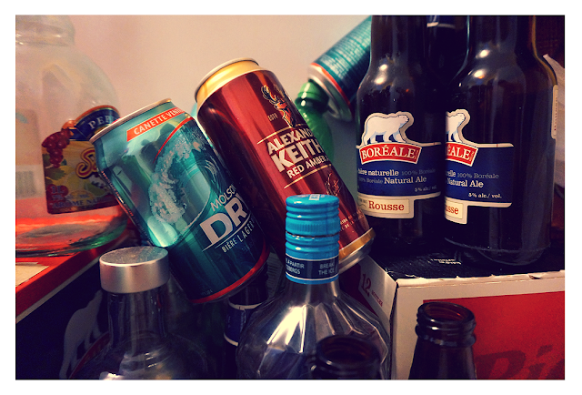 BUT: If Finns thought we drink a lot of beer, we don't. Because quebeckers do. I have 7 12-packs of beer in my kitchen at this very moment, and we buy more every week. Beer is mostly sold in boxes in here, and no one really buys individual bottles. Beer is cheap and beer is good. Quebeckers are crazy about their microbreweries, and every town seems to have at least one. It's a hipster's dream in here, really. If a quebecker wants to get drunk, they do it with beer or, in some cases, cocktails. People seem to be able to drink ridiculous amounts of beer without their bellies looking like beach balls, which is the case with yours truly after c.a. 3 bottles. It wobbles.